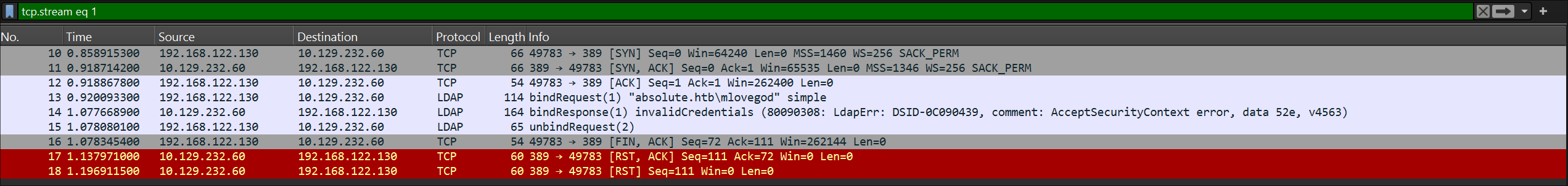 LDAP 10.129.232.60 389 DC [*] Windows 10 / Server 2019 Build 17763 (name:DC) (domain:ABSOLUTE.HTB) (signing:None) (channel binding:Never)